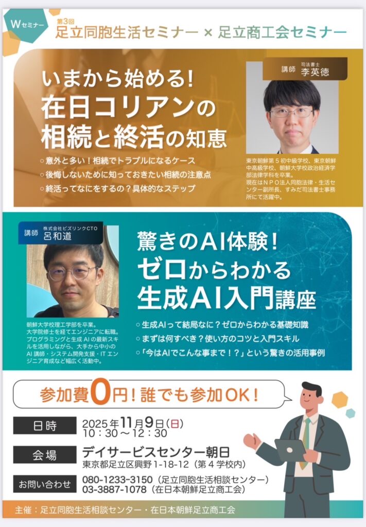 問い合わせ 足立同胞生活相談センター 080-1233-3150 在日本朝鮮足立商工会 03-3887-1078